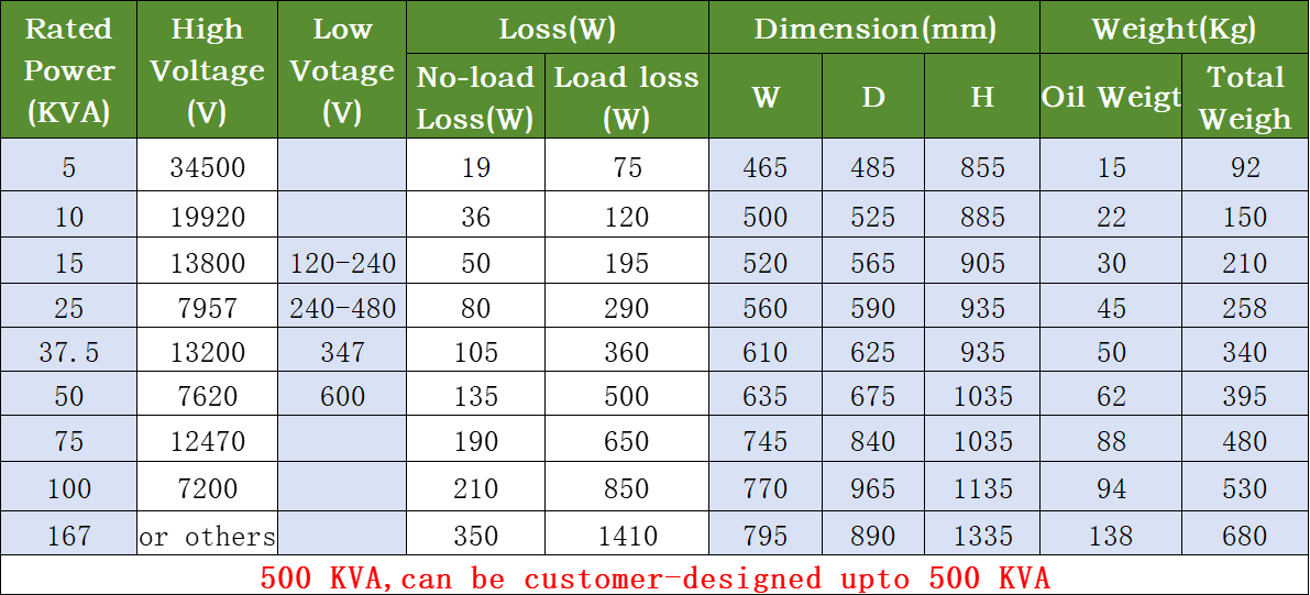 >>>*Technical Data For Single-Phase Pole Mounted Distribution Transformer